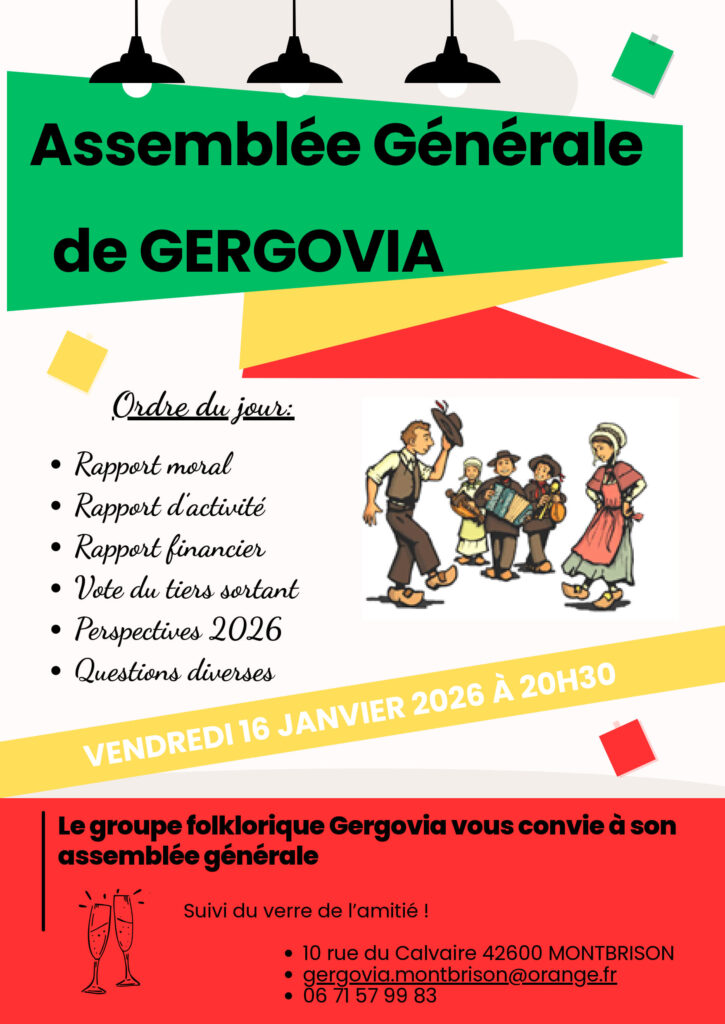 Le vendredi 16 janvier à 20h30 dans son local au calvaire, se déroulera l'assemblée générale de Gergovia, moment d'échange et de partage pour revenir sur l'année écoulée et celle à venir.